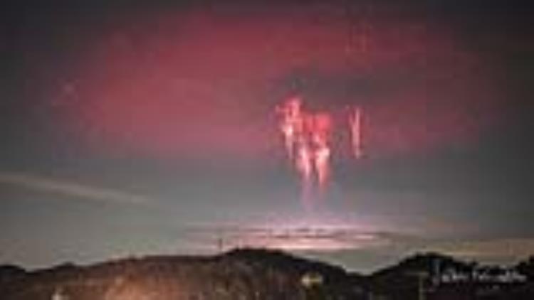 What's happening in the sky? Lightning. The most commonly seen type of lightning involves flashes of bright white light between clouds. Over the past 50 years, though, other types of upper-atmospheric lightning have been confirmed, including tentacled red sprites and ringed ELVES. Although both last only a small fraction of a second, sprites are brighter and easier to photograph than their more common electrical-discharge cousins. ELVES are rapidly expanding rings that are thought to be created when an electromagnetic pulse shoots upward from charged clouds and impacts the ionosphere, causing nitrogen molecules to glow. Capturing either form of lightning takes patience and experience -- capturing them both together, since they usually occur separately, is rare. The featured image is a frame from a video recorded from Possagno, Italy late last month above a distant thunderstorm over the Adriatic Sea.